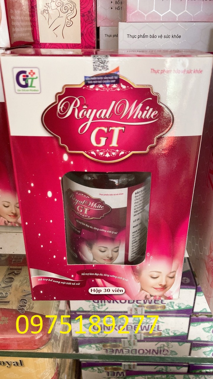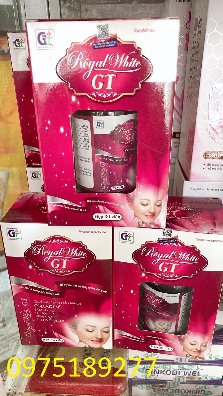 ROYALWHITE GT ĐẸP DA, TĂNG CƯỜNG SINH LÝ NỮ: GIẢM CÁC BIỂU HIỆN DO THIẾU HỤT NỘI TIẾT, GIÚP ĐẸP DA, DA TƯƠI SÁNG, MỊN MÀNG.